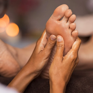 Stimulate and massage pressure points in legs to release the energy and relax tired legs